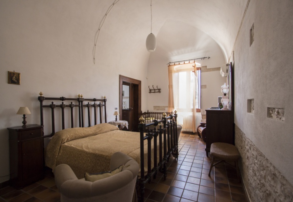 Ampia camera tripla di 20 mq con bagno interno. Caratterizzata da una splendida volta a botte, costruita con l'uso di particolari mattoni forati tondi, era anticamente riservata all'uso del proprietario terriero.